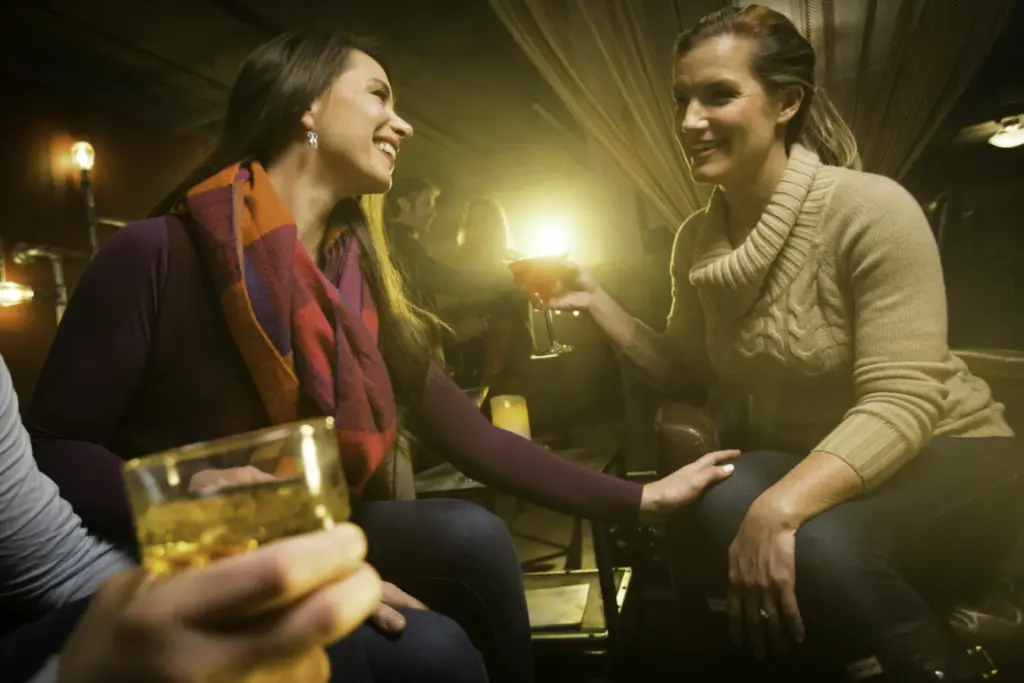 The nightlife at Heavenly is legendary, primarily centered around the Stateline area on the Nevada side, which is home to several large, 24-hour casinos (Harrah’s, Harvey’s, and MontBleu). Visitors can enjoy a “mini-Vegas” experience with non-stop entertainment, including nightclubs, bars, live music, and gambling. On the mountain, the “Unbuckle Après Party” at Tamarack Lodge features music and half-priced drinks, setting the tone for the evening’s festivities.
