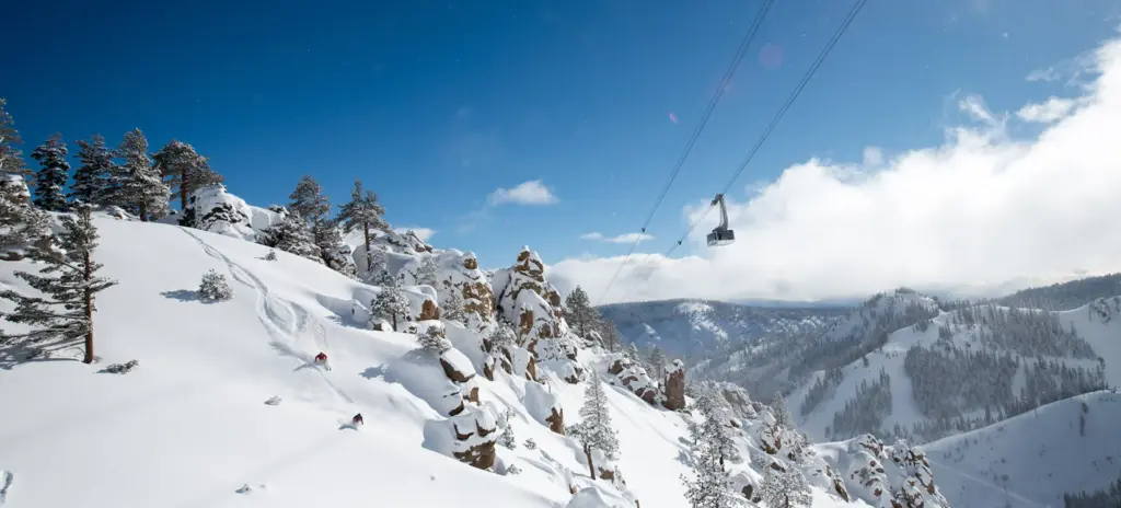 Olympic Valley is the larger of the two resorts and has a wide range of terrain for all ability levels. For newbies, Olympic Valley has welcoming instructors and convenient access. It’s not all for beginners though, Olympic Valley has challenging near vertical chutes, bowls, and steep faces. Olympic Valley is also famous for hosting the 1960 Winter Olympic Games. The base area village has a good selection of lodging, dining, shopping, cafes, and nightlife.